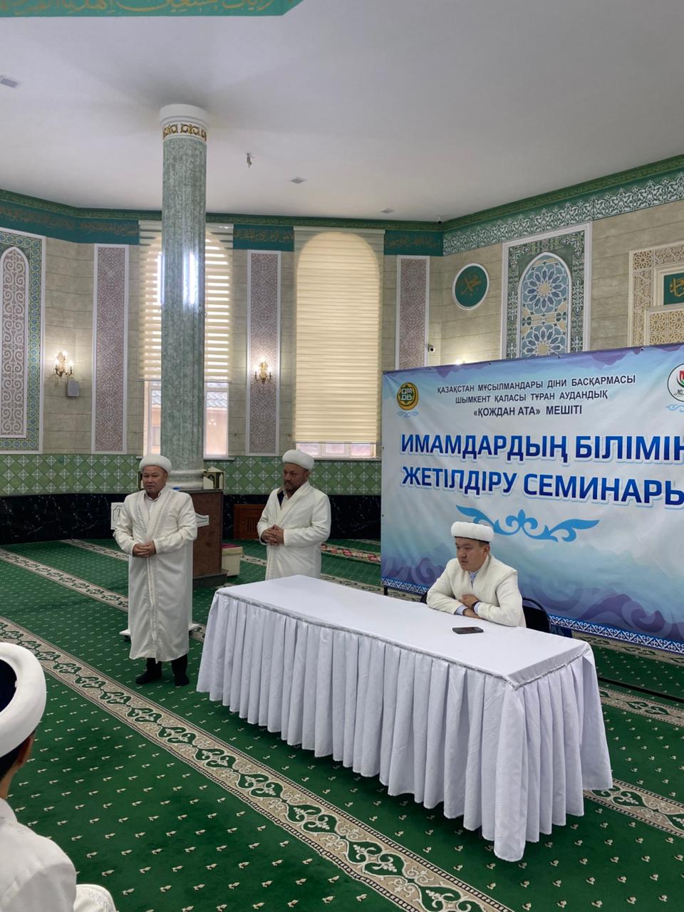 ҚМДБ Шымкент қаласы өкілдігі Бас имам Бақдаулет қажы Нұрматұлының тапсырмасымен Тұран аудандық Қождан ата мешітінде “Имамдардың білімін жетілдіру семинары” атты көшпелі жиын өтті.