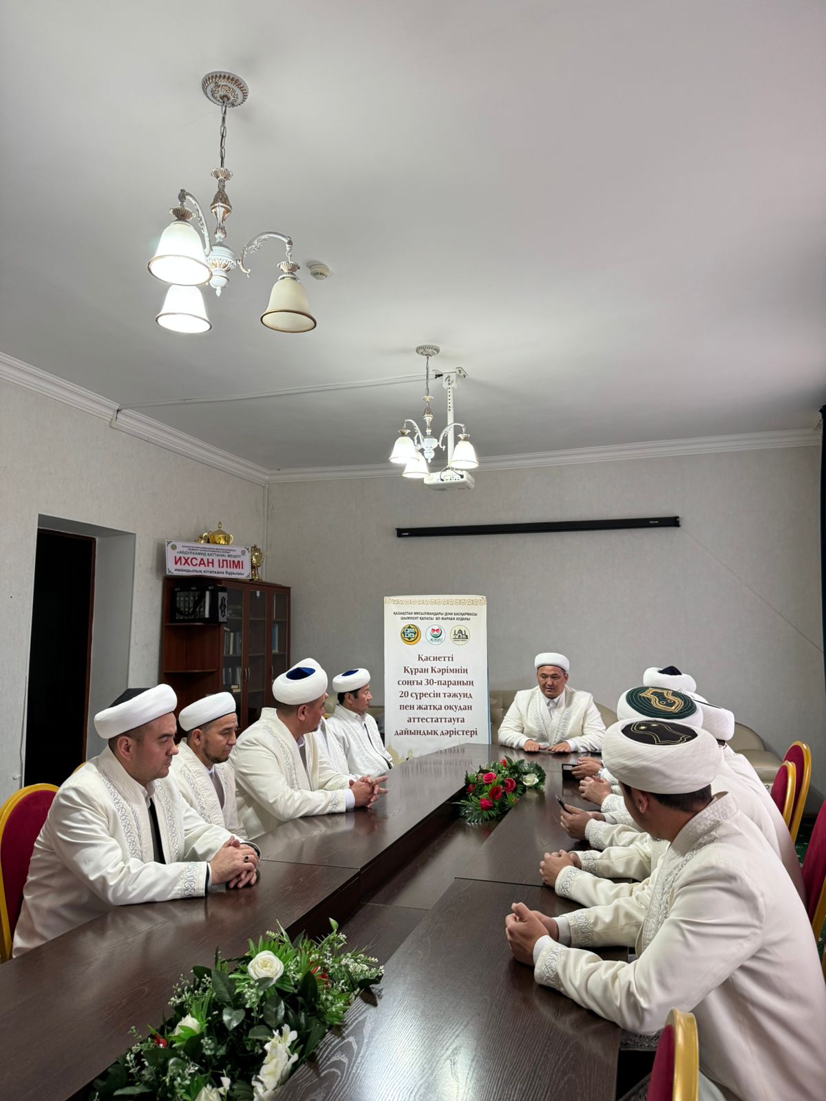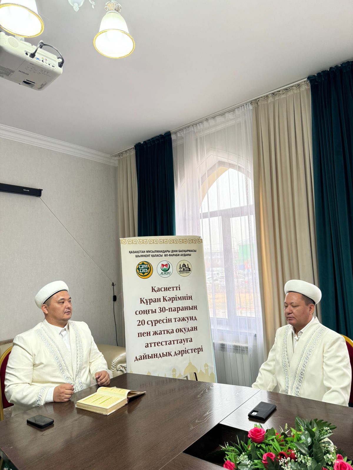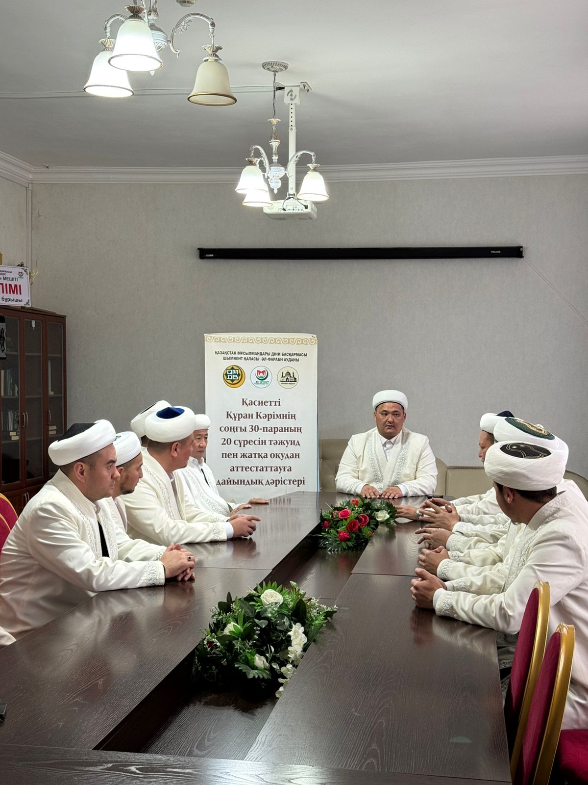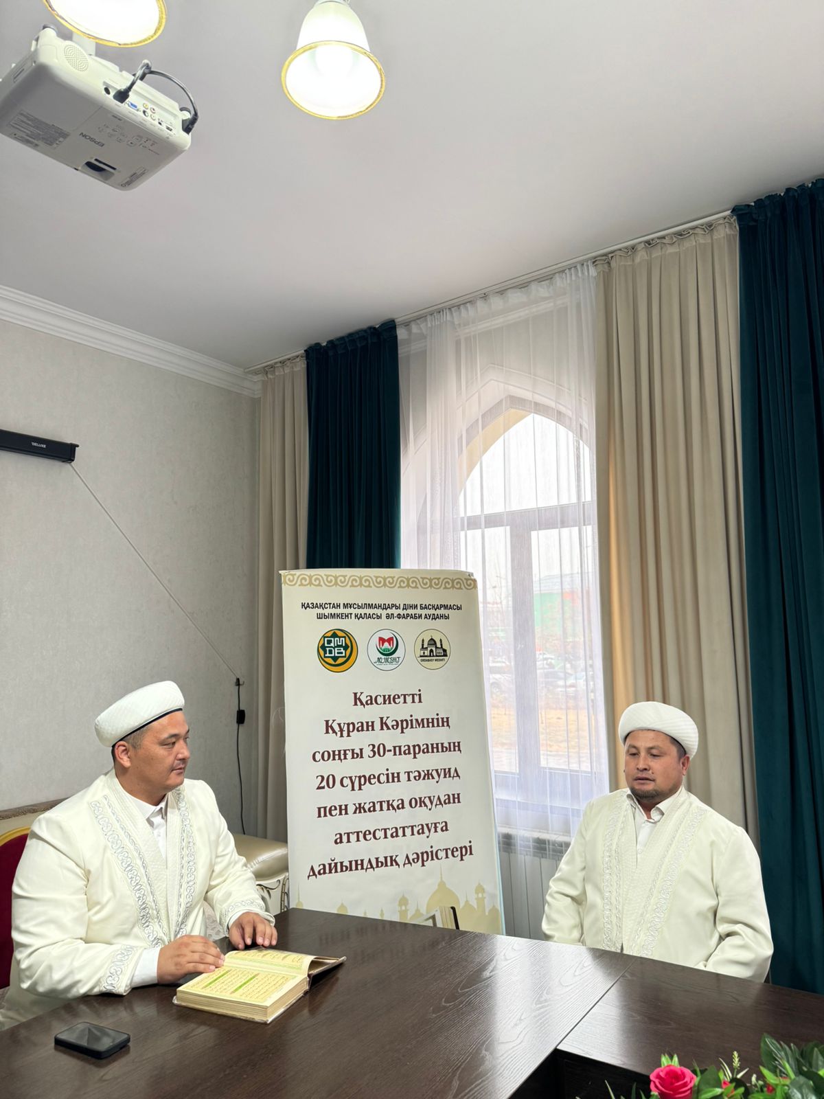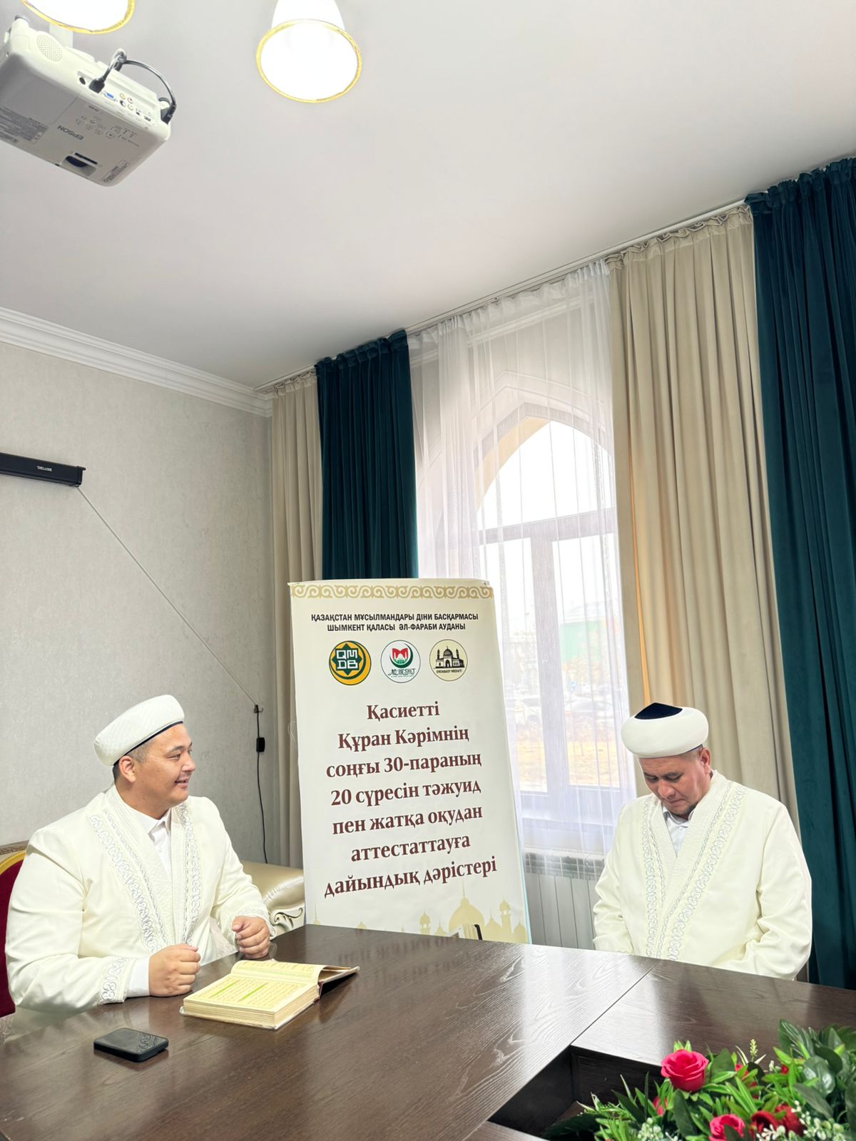 ҚМДБ Шымкент қаласы өкілдігі Бақдаулет қажы Нұрматұлының тапсырмасымен Әл-Фараби аудандық Ордабасы мешітінде “Имамдардың діни біліктілігін арттыруға арналған көшпелі семинар” өтті. Шара барасында “Қасиетті Құран Кәрімнің соңғы 30-параның 20 сүресін тәжуид пен жатқа оқудан аттестаттауға дайындық дәрістері” өтті. Барша имамдар сынақ тапсырып, дайындық жұмыстарын тағы да күшейту керектігін мақұлдады.